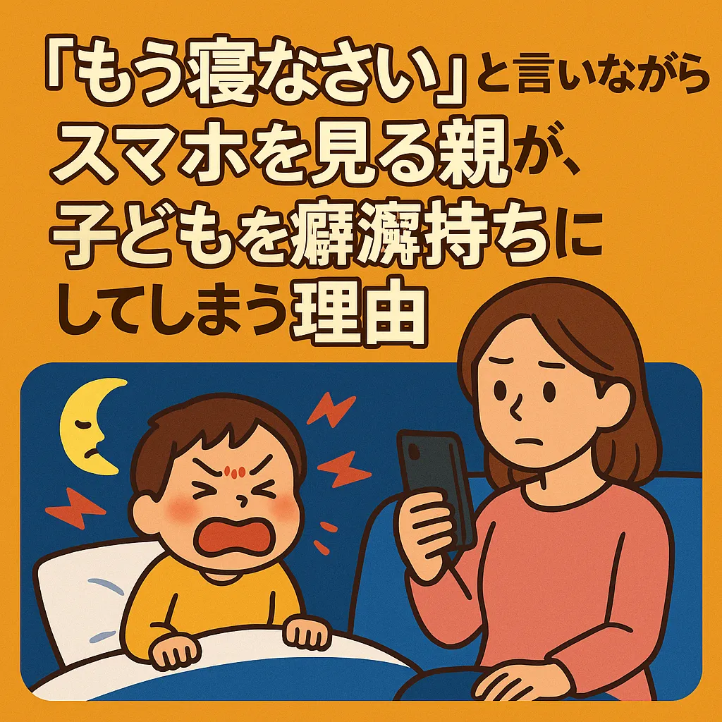 【子育て心理】「もう寝なさい」と言いながらスマホを見る親が、子どもを“癇癪持ち”にしてしまう理由 📱💥 「もう寝なさい」と言いながらスマホを触る――夜、子どもに「もう寝なさい!」と言いながら、親はその横でスマホをいじっていませんか?実はこの“よくある光景”が、子どもの心を大きく揺らしていることが…